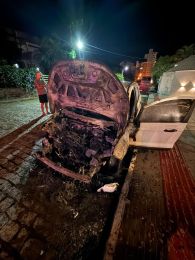 Fogo atingiu veículo, prédio vizinho e exigiu atuação defensiva dos bombeiros devido a vazamento de gás