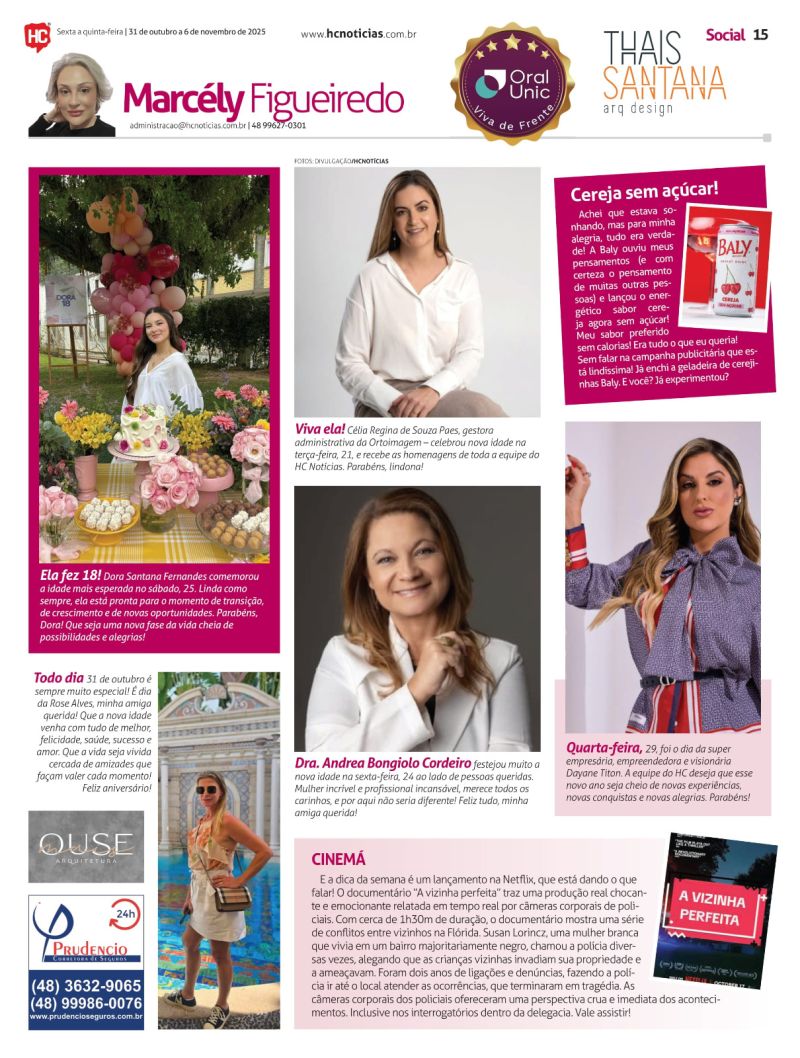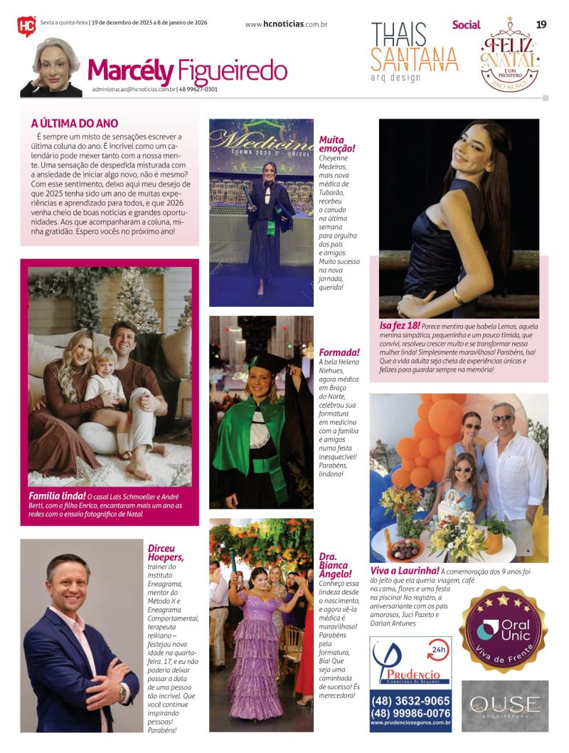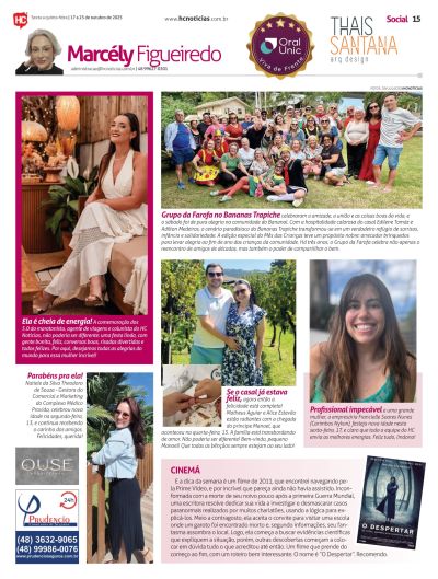 Após anos de trabalho voltado para área jurídica, a Diretora administrativa do HC Notícias - Marcély Figueiredo assina colunas sociais há mais de uma década. Várias escolhas neste período firmaram sua estada no Jornalismo de forma divertida e apaixonante. Feliz com o caminho que o veículo segue e seus resultados, a diretora crê que a comunicação com credibilidade sempre é o grande diferencial nos meios de comunicação. A proposta da coluna será a conexão com variados aspectos, pessoas, eventos, filmes, música, literatura, turismo, moda, enfim, o que for interessante e leve para o leitor.