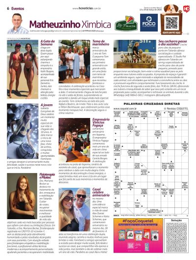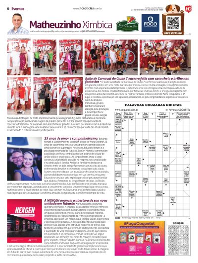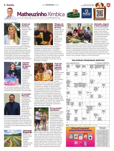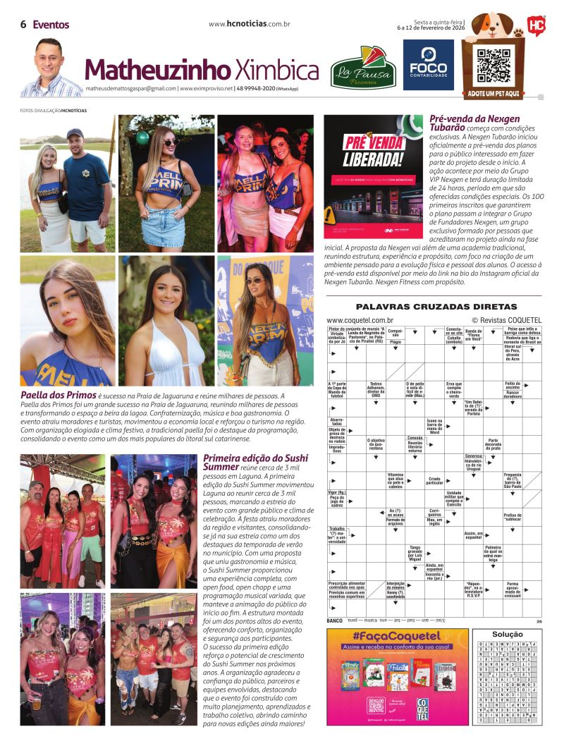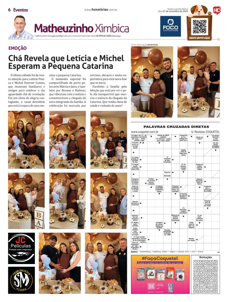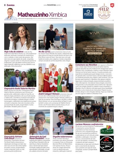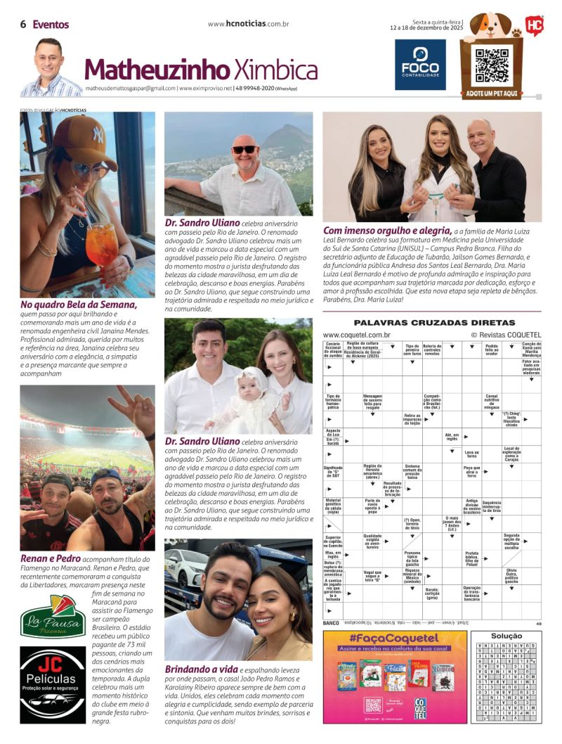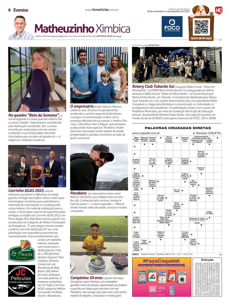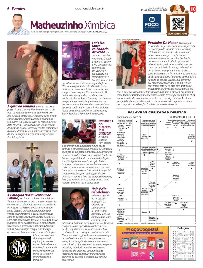 A partir do próximo sábado, Matheus Ximbica Gaspar também integra a equipe do HC Notícias. Ele escreverá sobre tudo o que acontece na área de entretenimento nas noites na região. Matheus foi pioneiro na noite em Tubarão com o portal eletrônico, quando iniciou em 2001. Hoje atua com o portal Eximproviso, onde chegou a 20 milhões de acessos, desde quando foi criado, em 2000. Junto também existe a revista de mesmo nome.