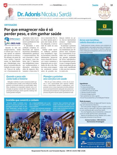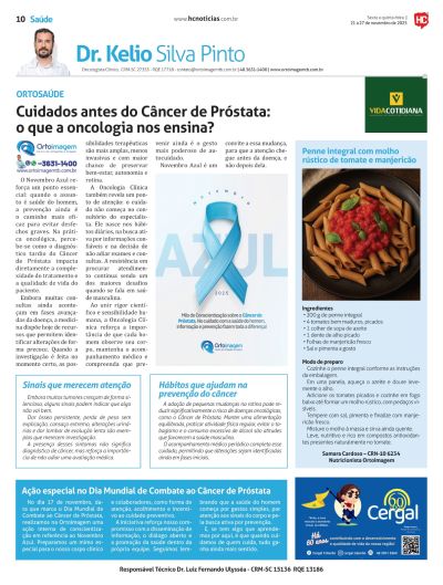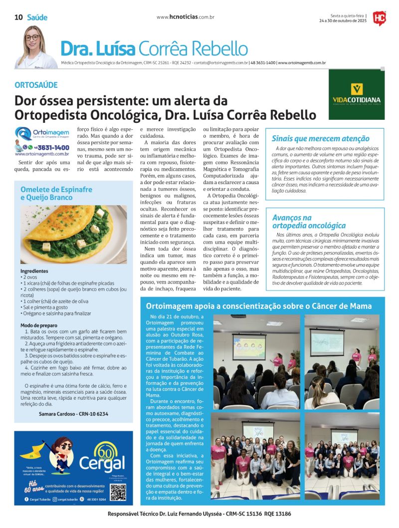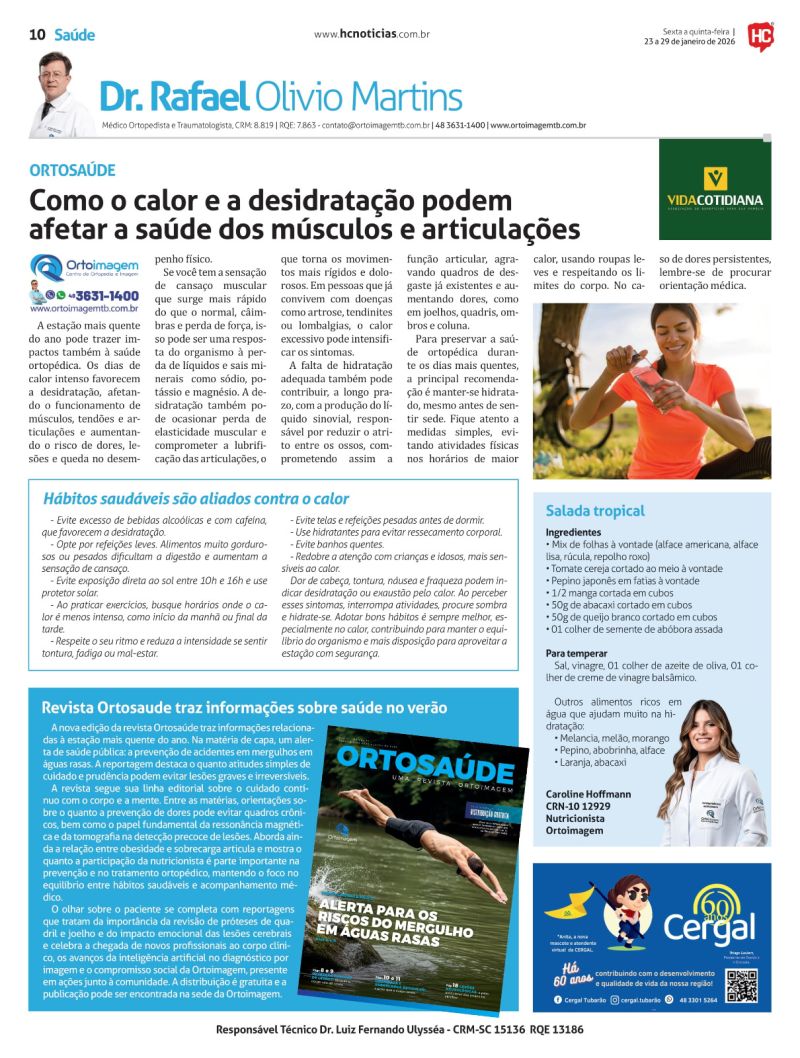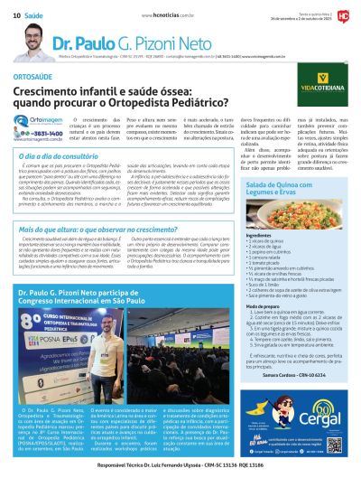 A editoria de Saúde é escrita por profissionais da Clínica Ortoimagem. Composta por Ortopedistas, Neurologista, Reumatologistas, Endocrinologista, Clínica Médica, Radiologistas, Nutricionista e Cardiologista. A proposta da coluna é levar informações de saúde à população, através de especialistas em diversas áreas.