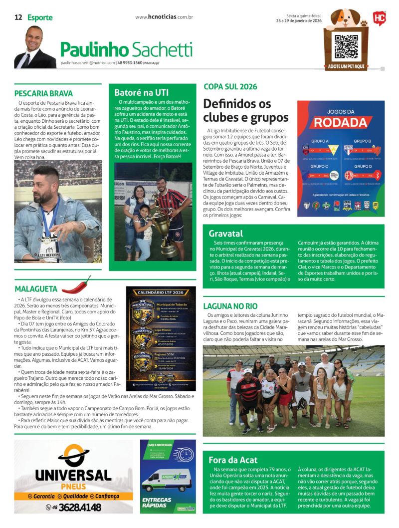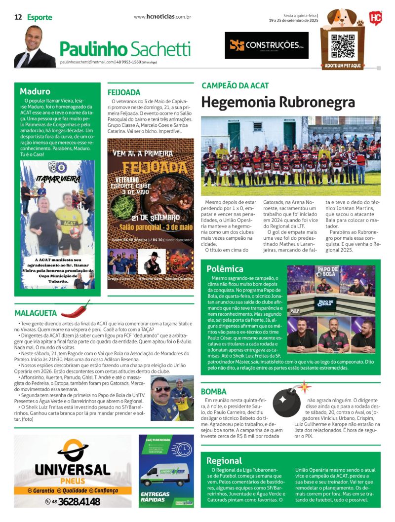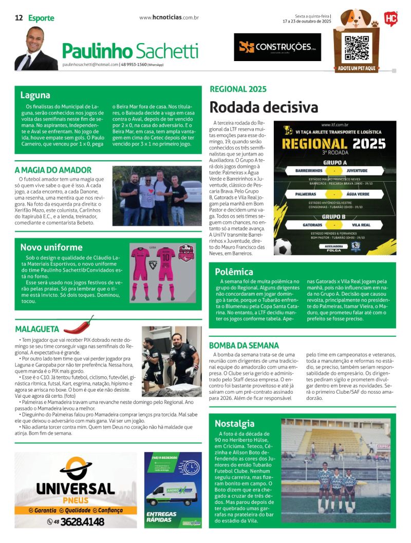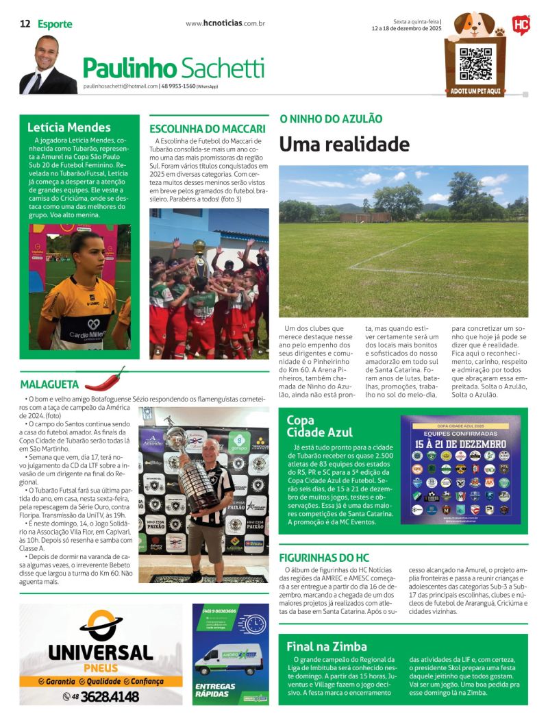 O programa que tem como principal foco o futebol amador e as ações dos times Hercílio Luz e Atlético Tubarão, é replicado no portal HC Notícias todos os dias às 12h30.