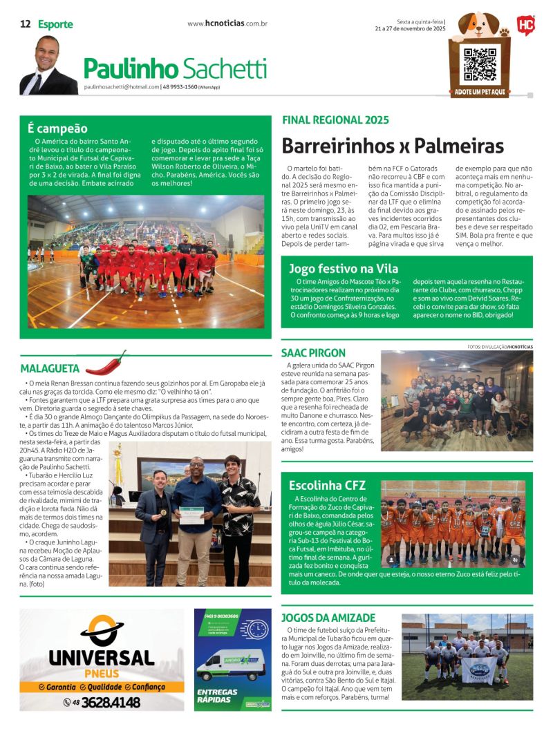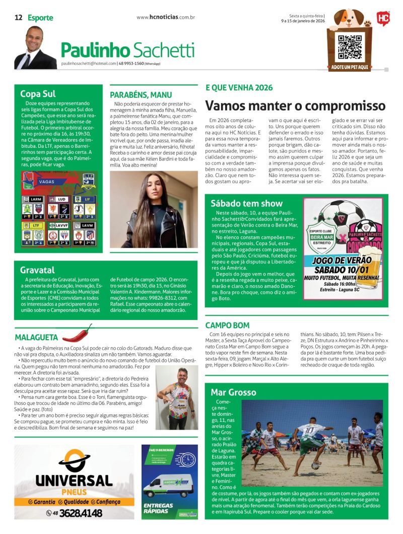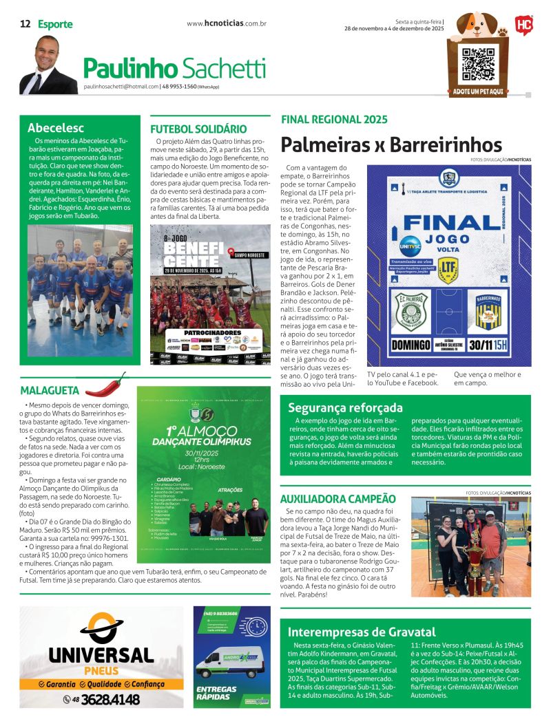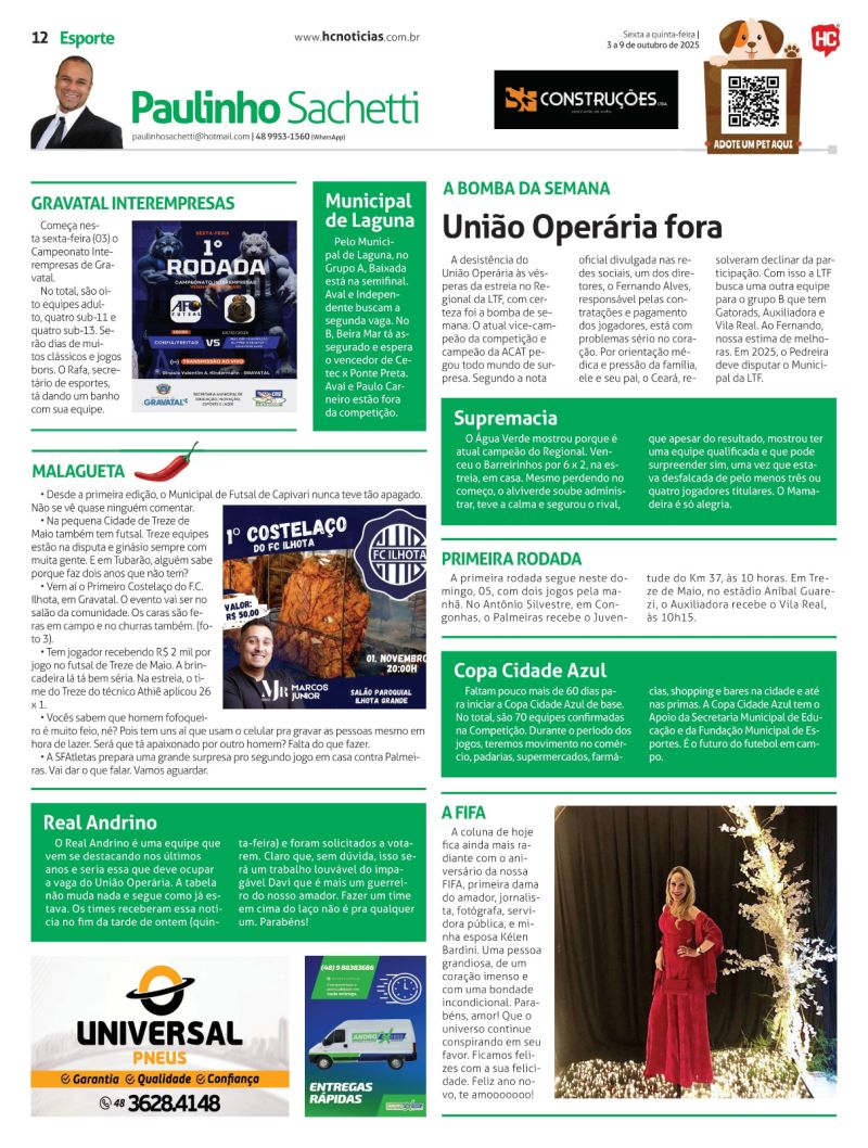 O programa que tem como principal foco o futebol amador e as ações dos times Hercílio Luz e Atlético Tubarão, é replicado no portal HC Notícias todos os dias às 12h30.