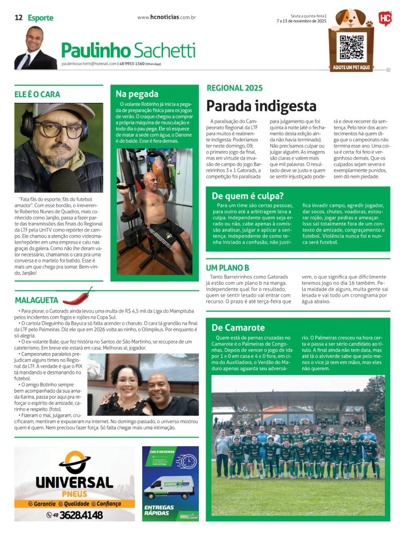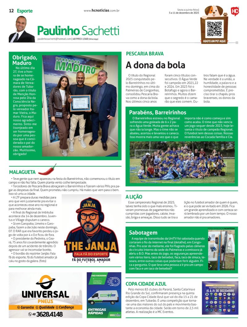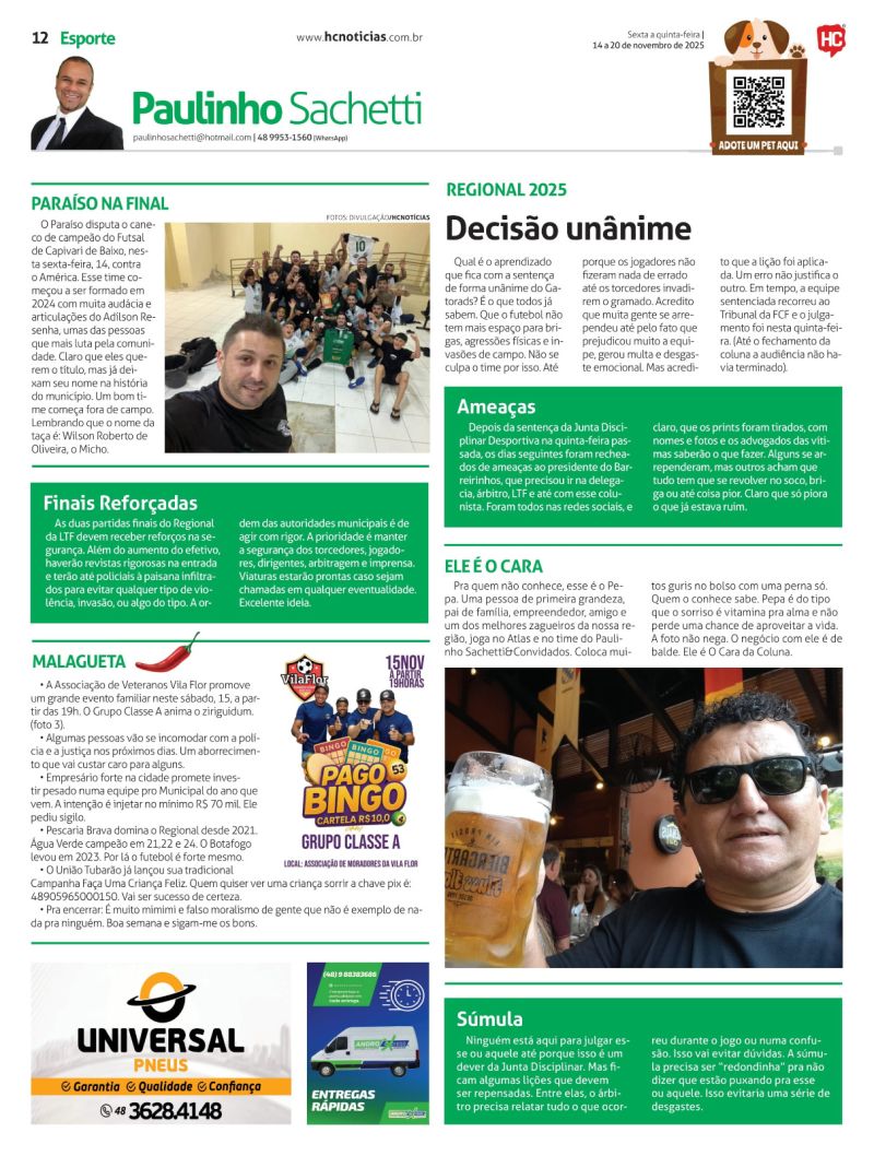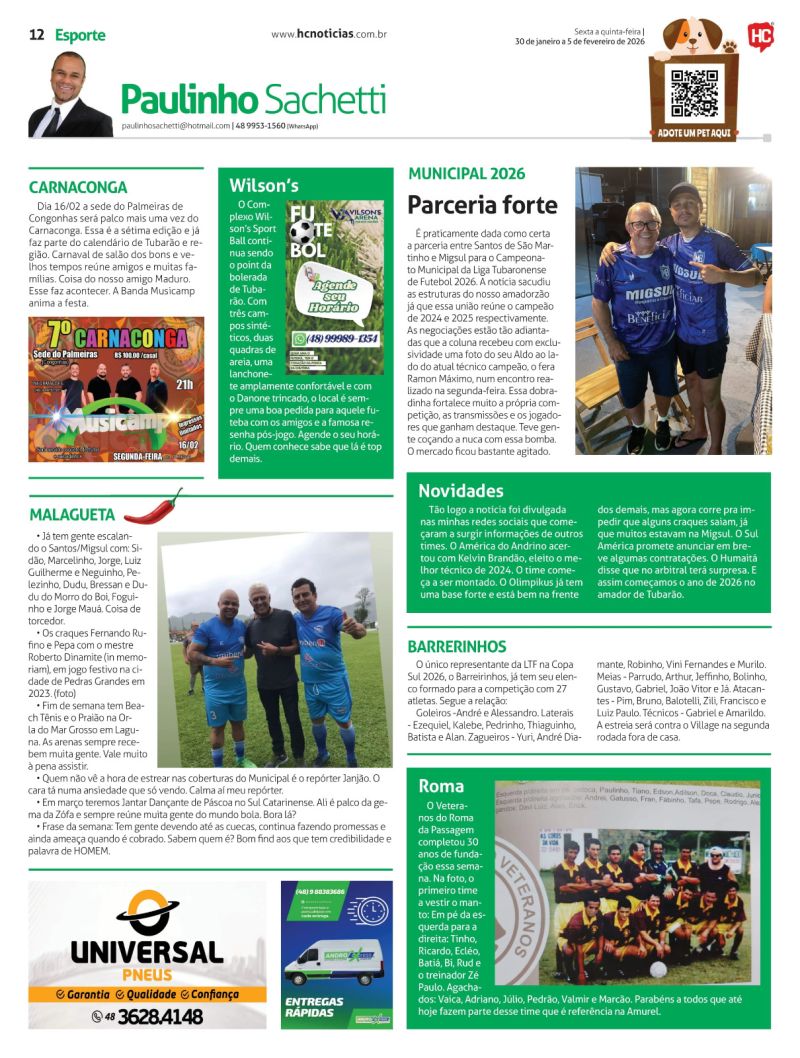 Há 29 anos atuando na rádio Tubá com programas de esporte e o Camarote do Paulinho, e reportagens e colunas em jornais estaduais, regionais e locais, atualmente, o radialista apresenta o programa Papo de Bola veiculado nas redes sociais de segunda a sexta às 19h.
