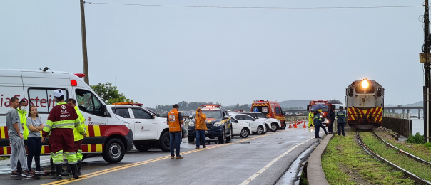 Durante o ato, a via local foi totalmente bloqueada, sendo o fluxo desviado para a Ponte Anita Garibaldi, sem sofrer qualquer alteração. O cenário da simulação foi uma colisão entre um carro e um caminhão transportando diesel, que resultou no vazamento do material sobre a pista, bloqueando-a totalmente, onde, na cena, as vítimas foram retiradas com segurança e encaminhadas ao hospital.