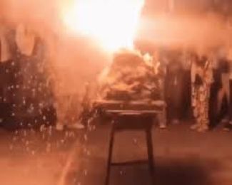 Um grupo de alunos tentava simular a erupção de um vulcão. Ao acender a maquete, as chamas se propagaram rapidamente e provocaram uma forte explosão.