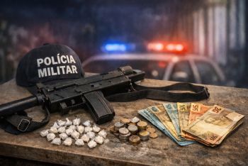 Ocorrência foi registrada no bairro Passagem; polícia encontrou crack, dinheiro e uma metralhadora semelhante à usada em roubo recente