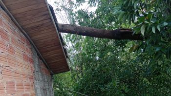 Segundo relatos, a chuva rápida e intensa provocou quedas de galhos e pequenos estragos similares