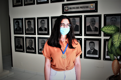 A estudante da Escola Stanislau Gaidzinski Filho, Júlia Santos Barbosa, de apenas 14 anos, recebeu um reconhecimento oficial da Prefeitura de Capivari de Baixo